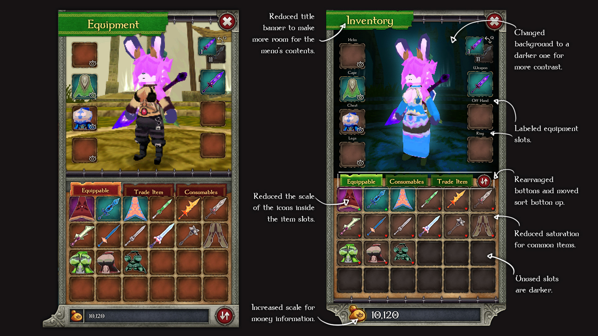 Changes to the inventory menu design. Based on user feedback.