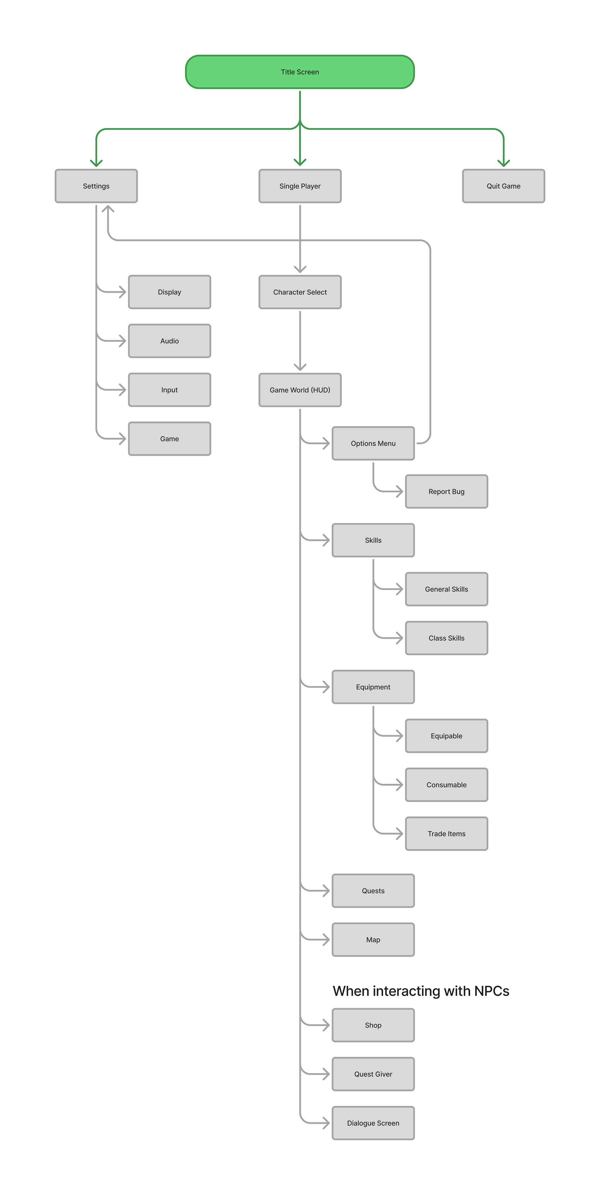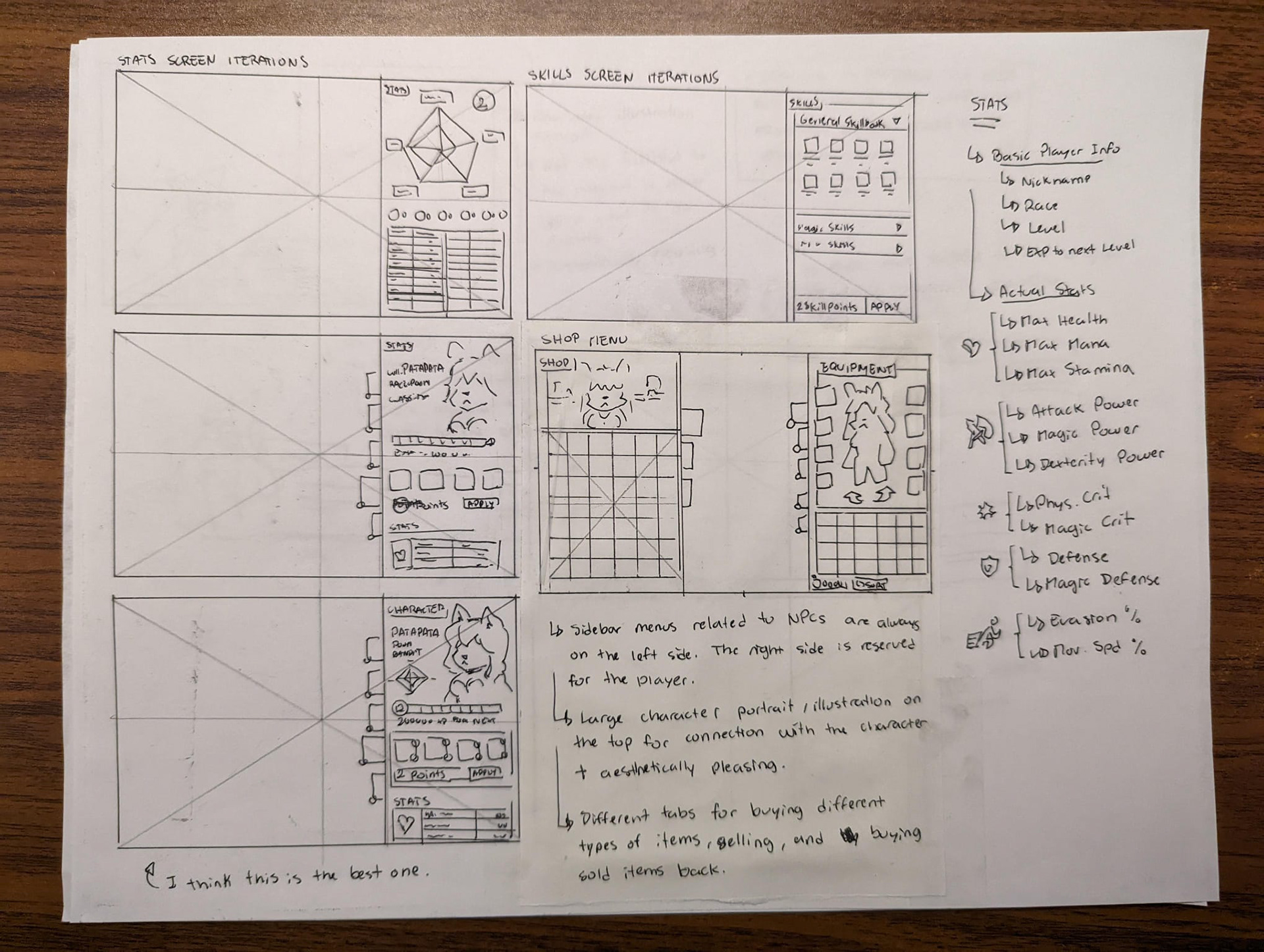 In this project, I have confirmed that starting by figuring out the information architecture of the game helps to determine the scope of the project, takes less effort than starting to design UI elements, and saves tons of time later on. This is not the first project that I started by figuring out a sitemap and a user flow before moving on to the visuals, yet it confirms this feeling I've been having.