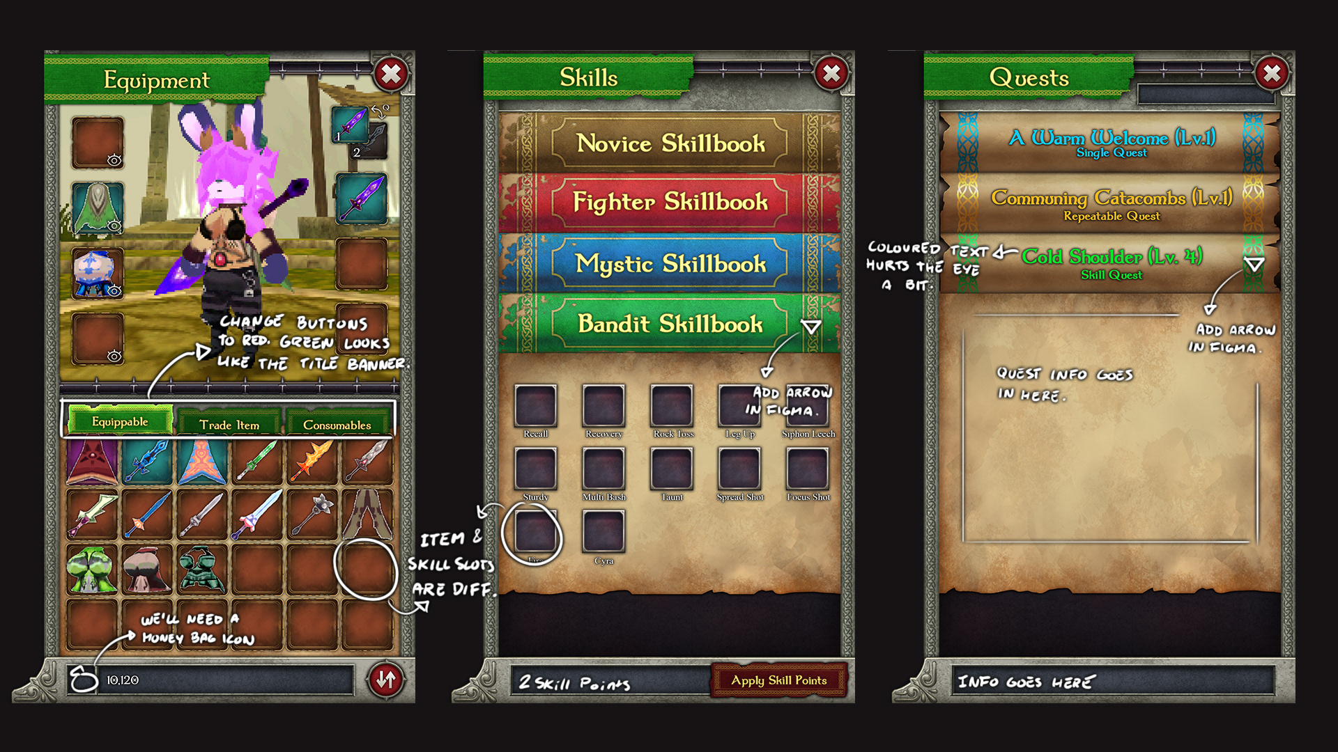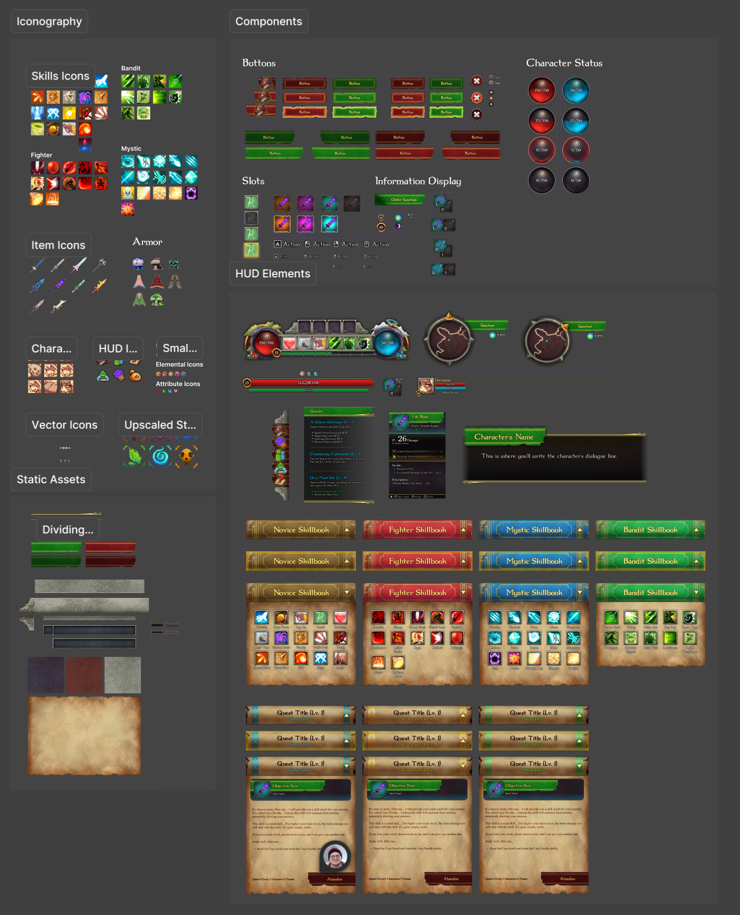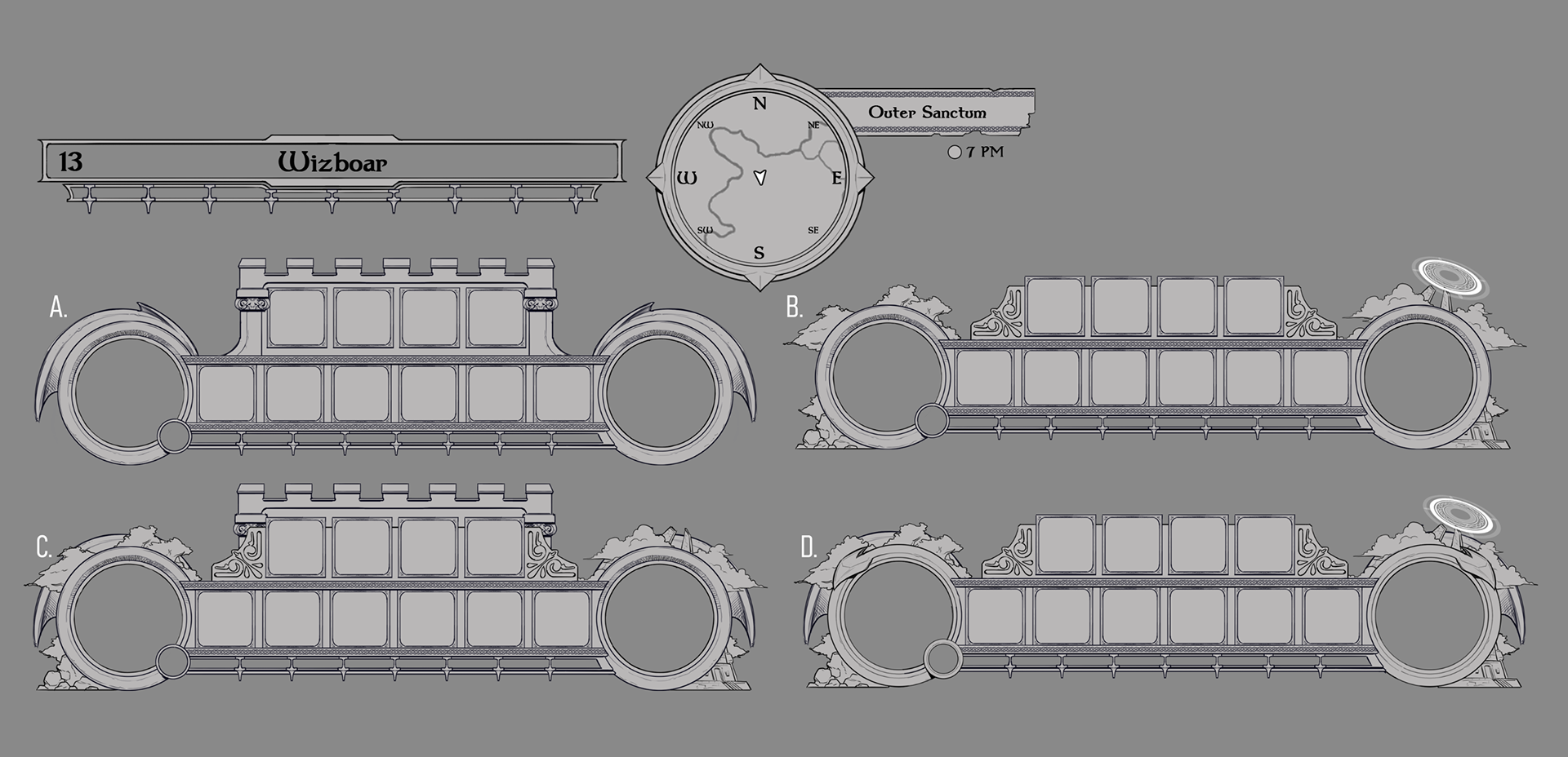 Finalized concept. Not all elements were polished as they were either a repetition of other assets already done or were going to be done in Figma.