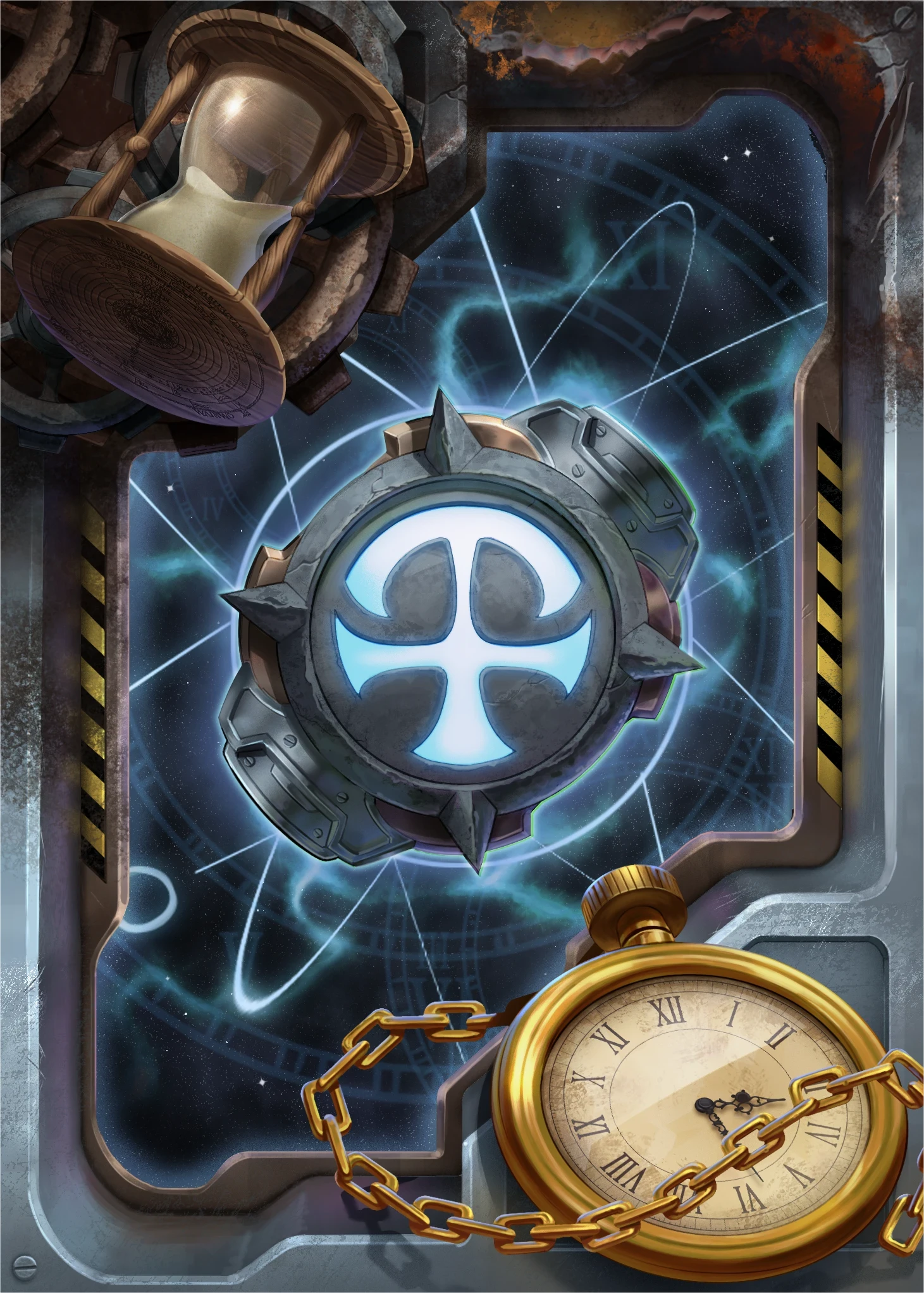 To stick to this motif, I used symbols and tools related to time such as the hourglass, the pocket watch and the chronos symbol, as well as textures and materials to indicate old vs new. The clash of future and past is also present in the depiction of the character Hilda, a barbarian enhanced by mechanical prosthetics that enhance her strength and her lightning abilities.