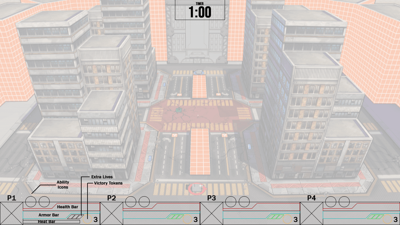 Information that's not related to the player goes in other areas of the screen. At this point in development, with what had been designed so far, the only other information that needed to be displayed was the match timer.