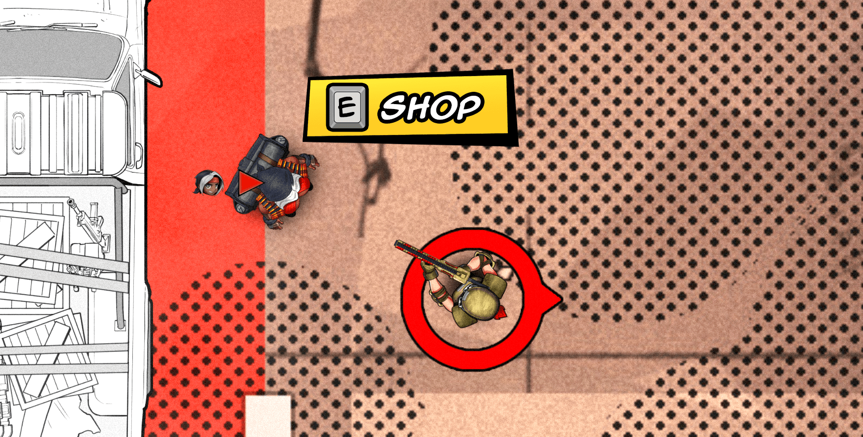 Positioning of UI elements is also key for players to perceive them. Input prompts, for instance, will be completely ignored if they're not naturally mapped, even with enough contrast and visual appeal. Input prompts should be positioned near the center of the player's view, and as players are often looking at the objects they want to interact with, that means those UI prompts need to be placed near those objects. That is especially the case for top-down games such as G.I.R.L.S. vs Aliens, where players pay more attention to areas closer the the edge of the screen rather than the center, where their character is.
